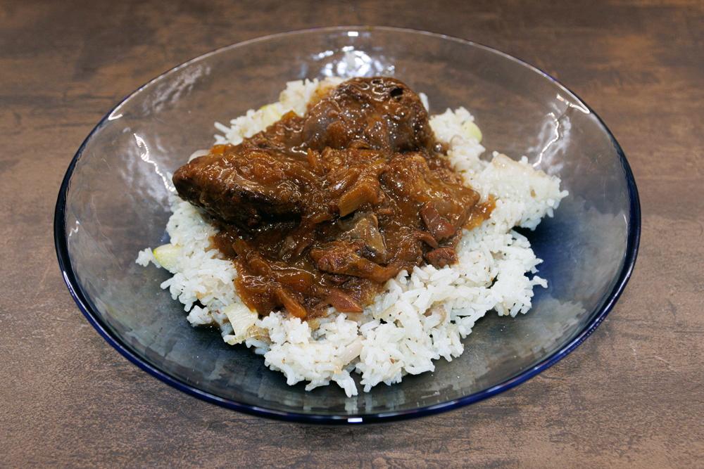 - Coupez la joue de bœuf en morceau d'environ 5 cm. Déposez les morceaux sur les oignons.